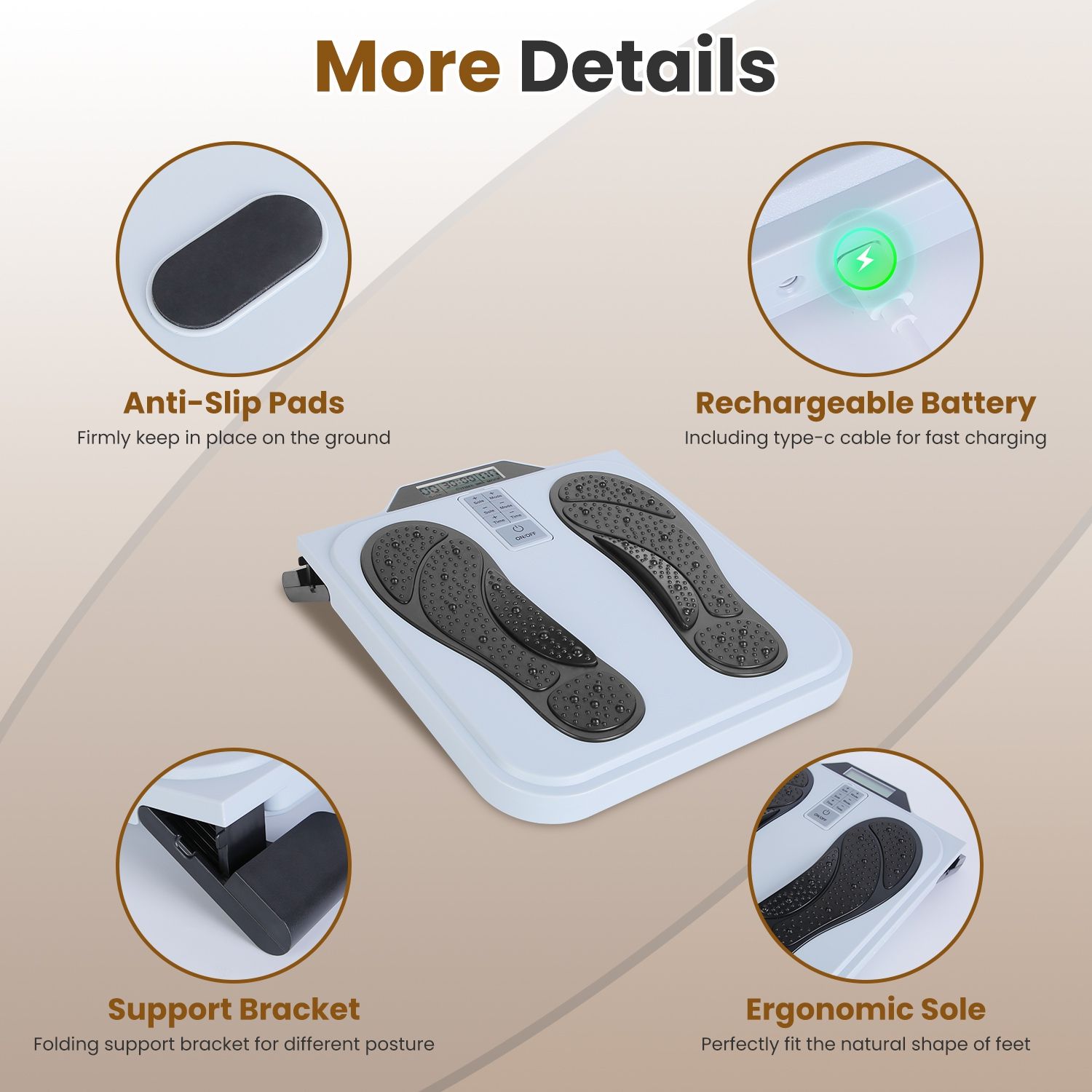 Advanced TENS & EMS Technology: Combing the benefits of TENS and EMS, our electric foot stimulator delivers mild and safe electrical currents to deeply stimulate muscle tissue, improve blood circulation and enhance muscle strength. Designed for consistent, long-term use(2~3months), offering effective relief from a variety of discomforts, including neuropathy, leg pain, swollen feet, stiffness, muscle cramps, numbness, and plantar fasciitis.