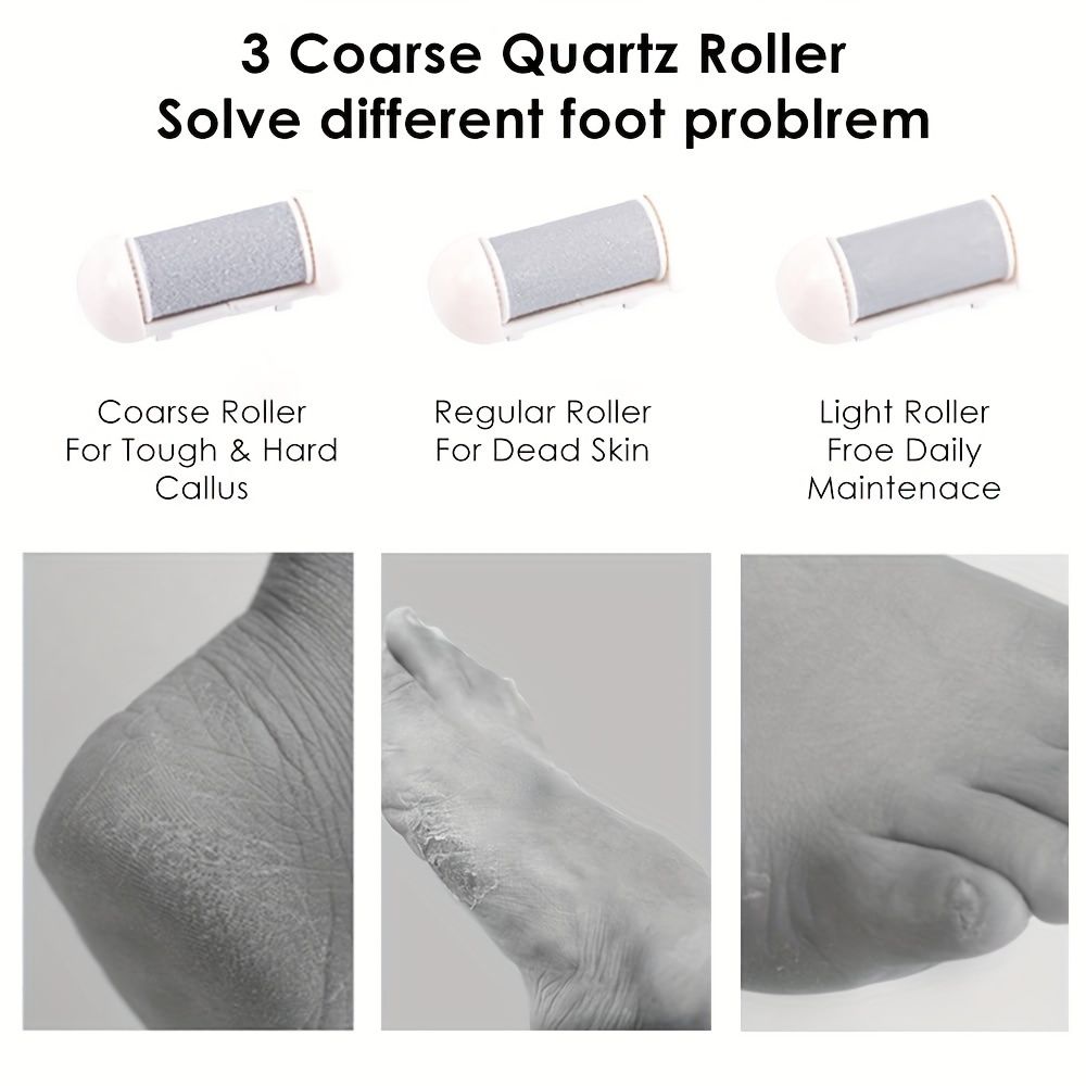 3 Roller Heads: One set foot dead skin remover pedicure kit including 3 different quartz sand grinding heads.